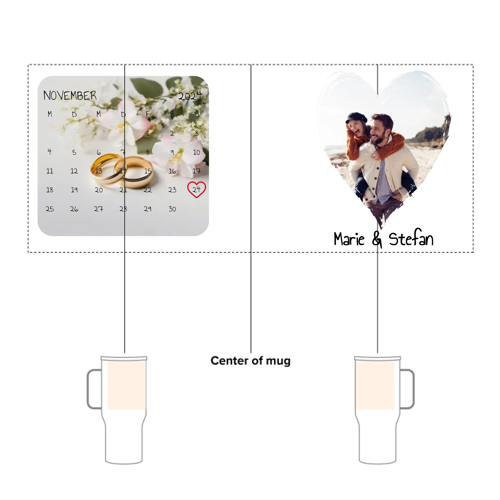 Design a unique photo mug with your favorite picture and a personalized calendar! Perfect as a practical gift or a personal eye-catcher for everyday use. Our custom-designed thermal mugs are reminiscent of the popular Stanley thermal mug. (Not an official Stanley product.)