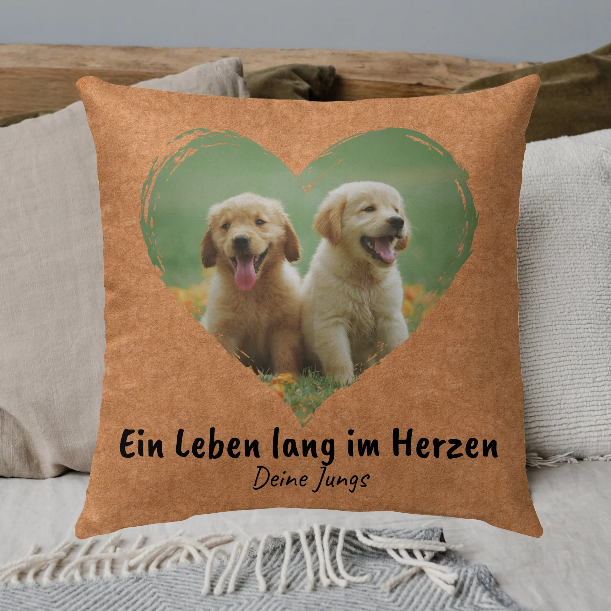 Snuggle up in love with this heart-shaped photo pillow! Your favorite photos are arranged in a heart shape and printed on high-quality material. Soft, cozy, and perfect for snuggling, this pillow will become a favorite. A playful, romantic design that shows how love warms the heart – ideal for treating yourself or your loved ones to this special pillow!