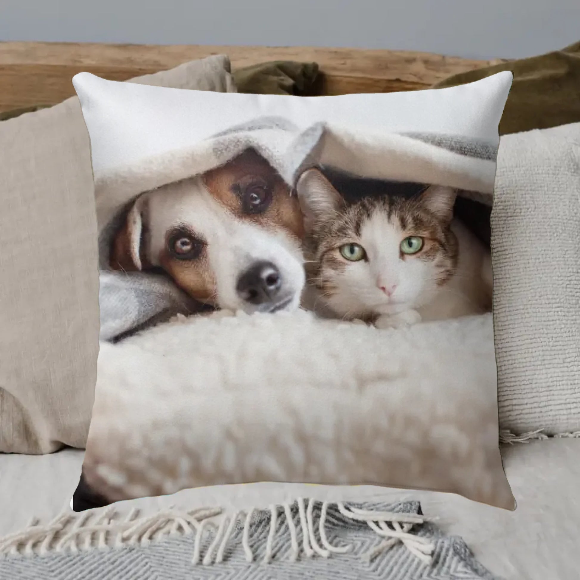 Transform your pet's favorite photo into a playful cartoon artwork – directly onto a cozy, personalized blanket! Perfect for snuggling up on the couch or as a unique gift for animal lovers. High-quality craftsmanship ensures durability and comfort. Each blanket is individually designed according to your wishes, so your furry friend shines in their best light. A touch of warmth with personality – for everyone who loves their pet.