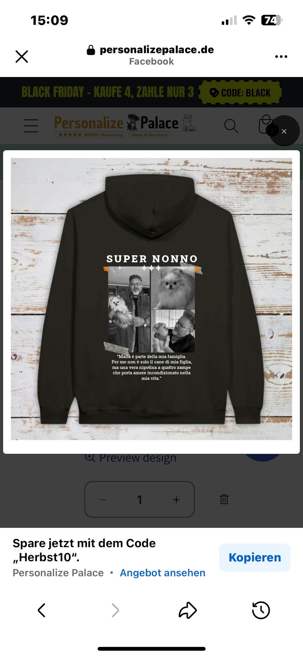 Ich habe einen Hoodie und ein T-Shirt mit einem Foto meines Haustiers bestellt. Die Farben sind sehr blass. Die Bildqualität ist schlecht. Die Größe stimmt nicht. Ich bin enttäuscht.