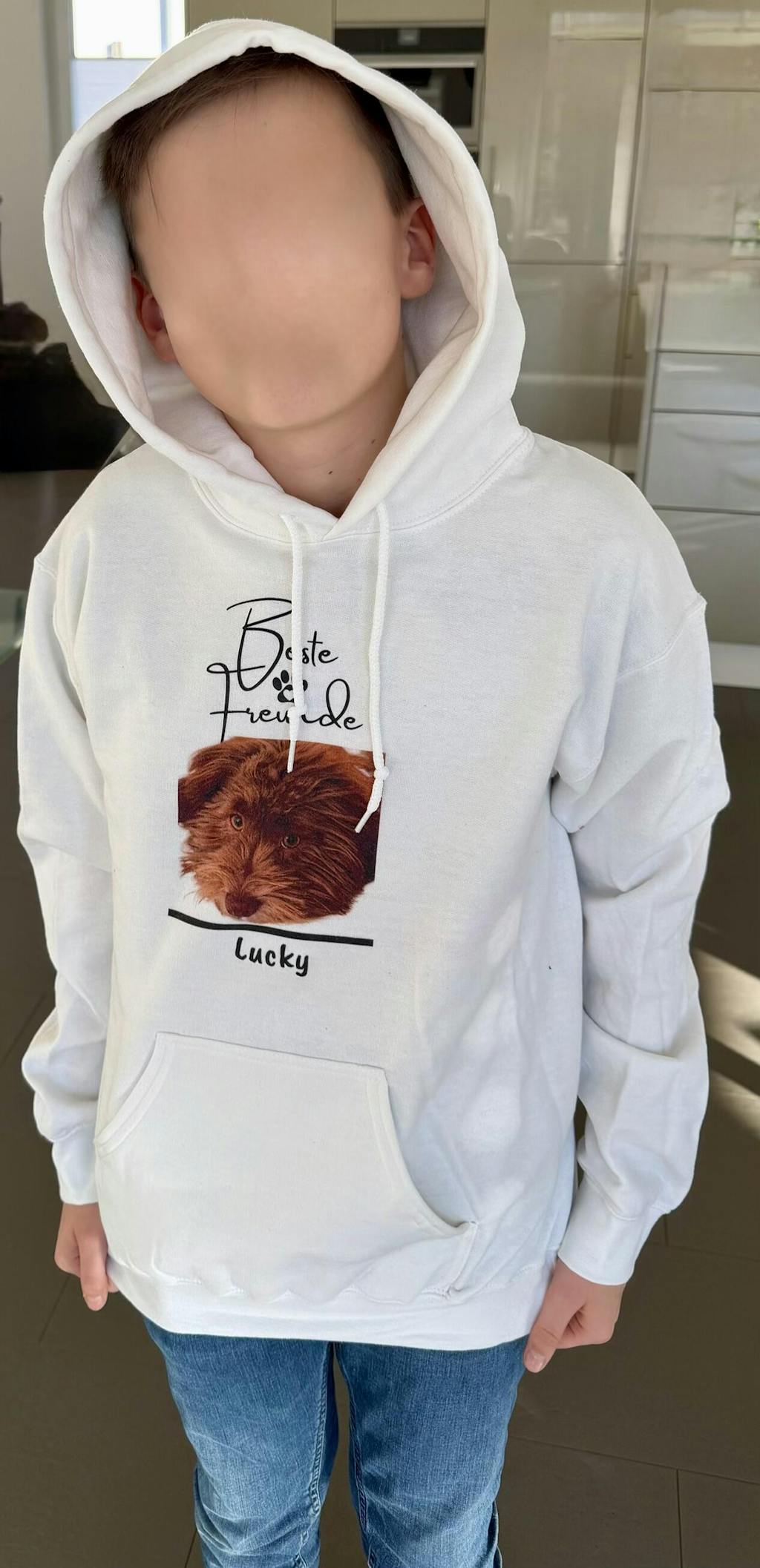 Schöner Hoodie. Mein Enkel liebt ihn. Angenehmer flauschiger Stoff.
