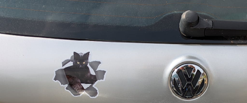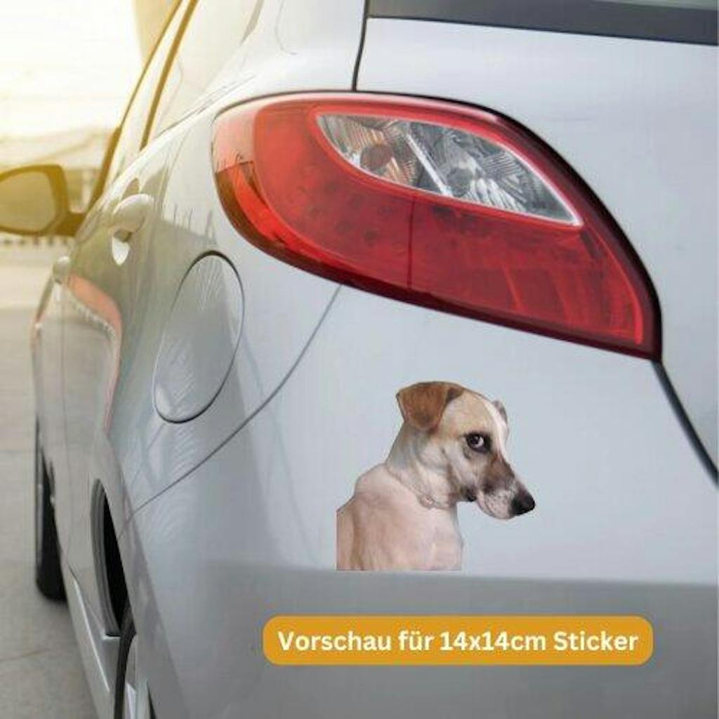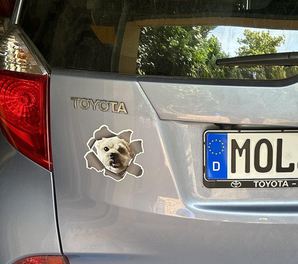 Der Aufkleber ist toll und genau in der richtigen Größe. So fährt der Hund immer mit.