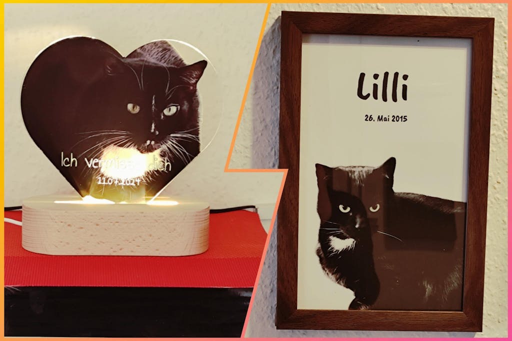 ich habe vor kurzen LED BIlder Herz von meine verstorbene katze anfertigen lassen was sehr schön geworden und und dazu habe ich von mein Kater ein Potrait in Bilderrahmen mit machen lassen, was auch sehr toll und preiswert gestaltet wurde. Ich würde es nochmal bei bedarf da bestellen.