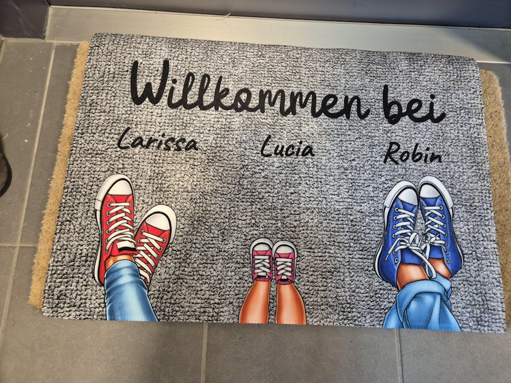 Your personalized family doormat for up to 8 people. Also suitable for shared apartments or rainbow families. Design yours now.